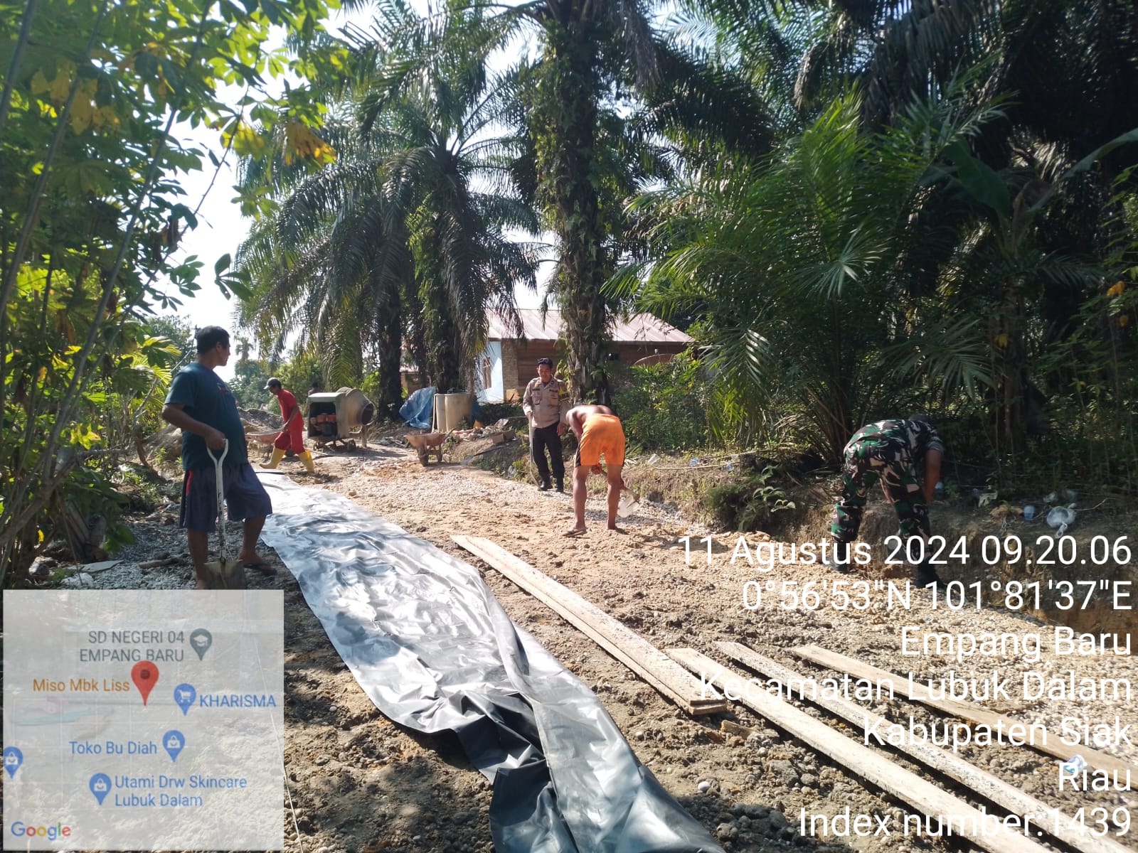 Kegiatan gotong royong dilaksanakan diKampung Empang Baru yang dihadiri oleh masyarakat, Babinsa dan Babinkantibmas dengan sasaran Gotong royong adalah melakukan pengecoran jalan di RT 02 RK 01, Kampung Empang Baru Kecamatan Lubuk Dalam.