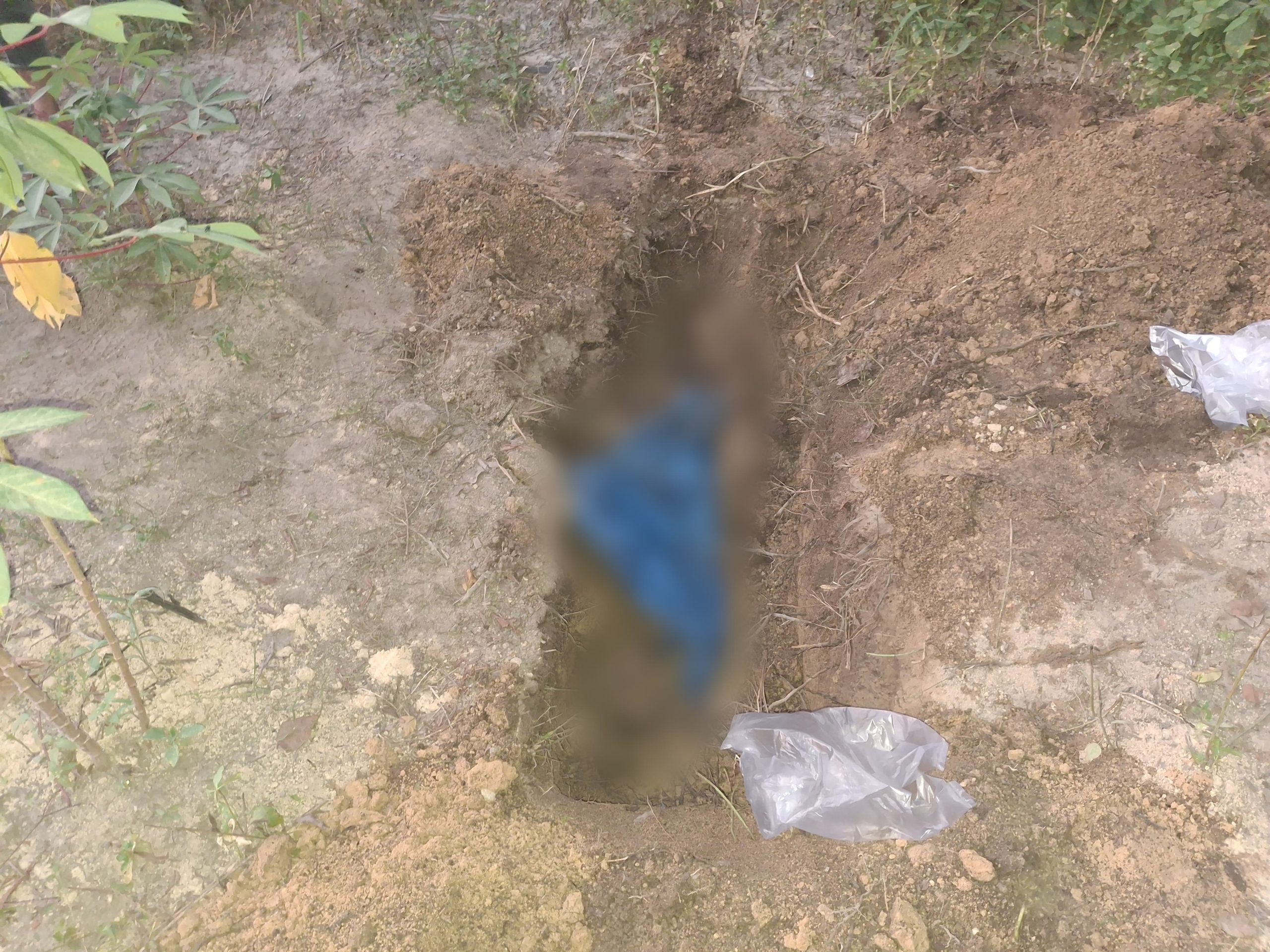 Penemuan itu bermula saat berinisial A (37), pemilik kebun, merasa curiga dengan aroma tidak sedap yang tercium di sekitar rumahnya. Ketika menelusuri sumber bau tersebut, ia melihat ada gundukan tanah yang tampak baru.