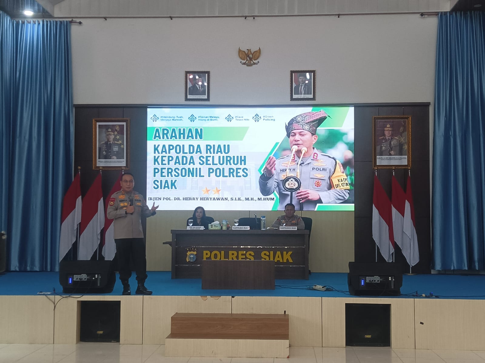 SIAK, LIPUTANREDAKSICOM– Kapolda Riau. Irjen Pol. Dr. Herry Heryawan, S.I.K., M.H., M.Hum., memberikan arahan langsung kepada seluruh personel jajaran polres siak dalam sebuah kegiatan internal yang digelar pada Selasa 21 / 4 / 2026 di gedung Endra Dharma Laksana,polres siak