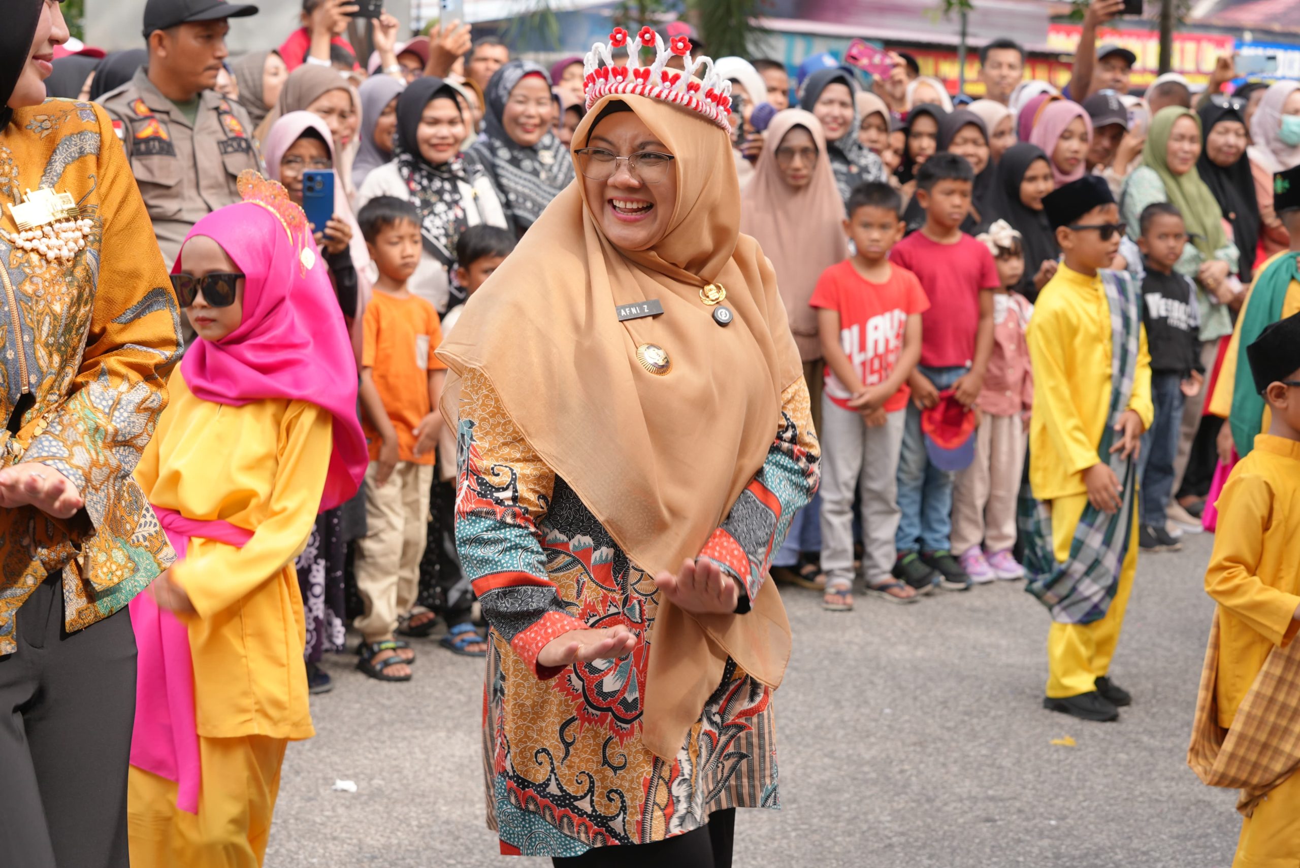 Bupati Siak Afni terlihat senang dan bangga dan mengapresiasi peserta karnaval yang ceria dan bersemangat menampilkan berbagai macam pakaian, dari pakaian adat, seragam dinas maupun profesi, pakaian pejuang, dan lainnya, serta penampilan yang ditampilkan oleh setiap peserta.