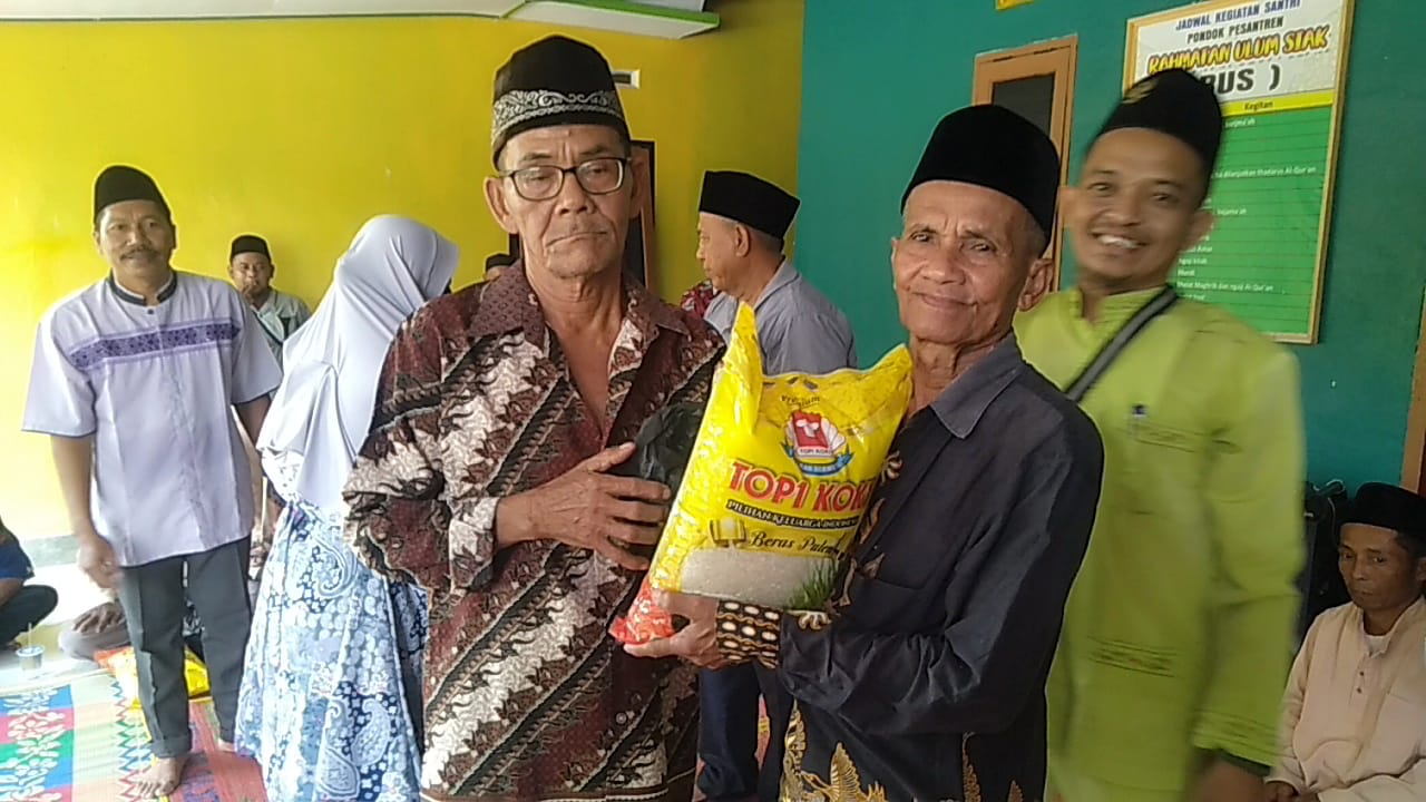 SIAK,LIPUTANREDAKSI.COM- Pendiri Yayasan Pondok Pesantren Rahmatan Ulum Siak(RUS), Haji Misdi memberikan bantuan berupa sembako kepada warga kurang mampu di kampung Kuala Gasib.