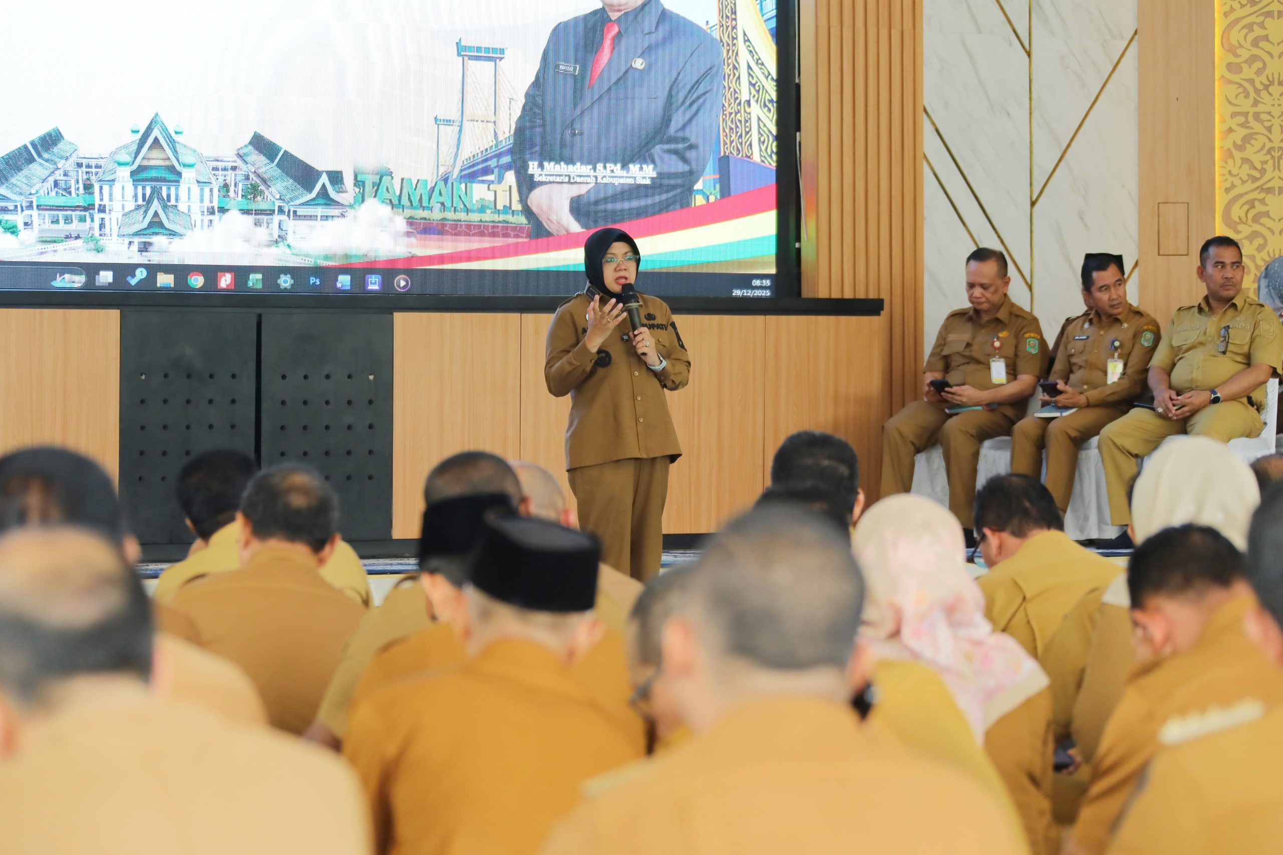 “Secara fisik kegiatan berjalan dan menunjukkan bahwa jajaran Pemkab Siak tetap bekerja. Namun realisasi keuangan memang terdampak karena ruang fiskal kita sangat terbatas,” jelasnya.***