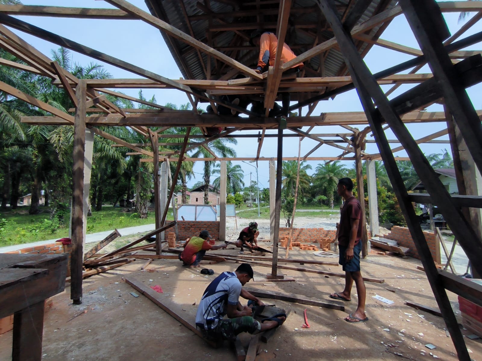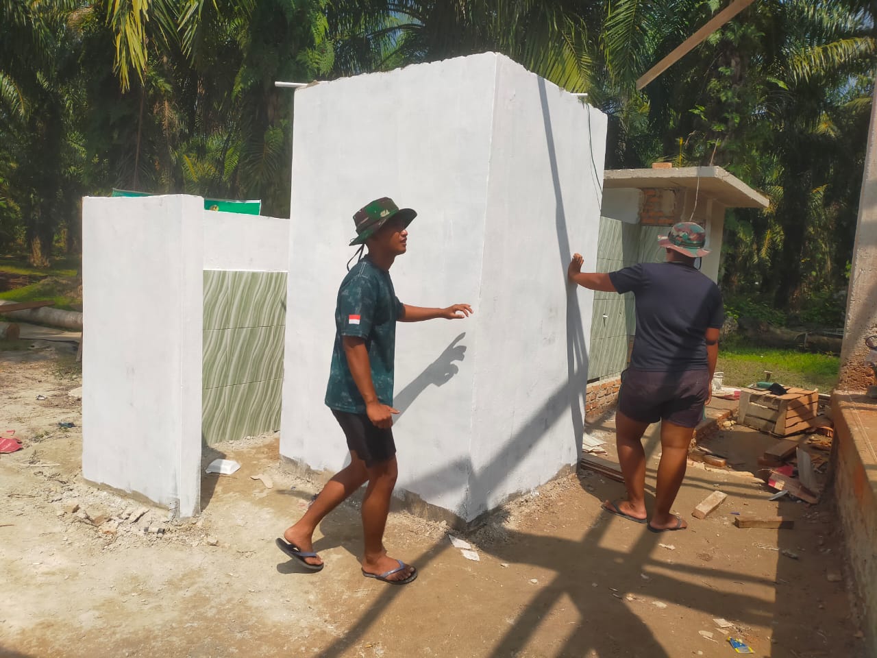 Gedebak-gedebuk terdengar suara pekerja mengaduk adonan semen dengan pasir menggunakan cangkul dan alat bantu melangsir material seperti angkong, cetok semen dan peralatan lainnya. Para pekerja terus mengangkut material untuk disusun di titik lokasi yang akan digarap pembangunan Rumah Layak Huni(RLH) dan fasilitas umum salah satunya Mandi Cuci Kakus(MCK).