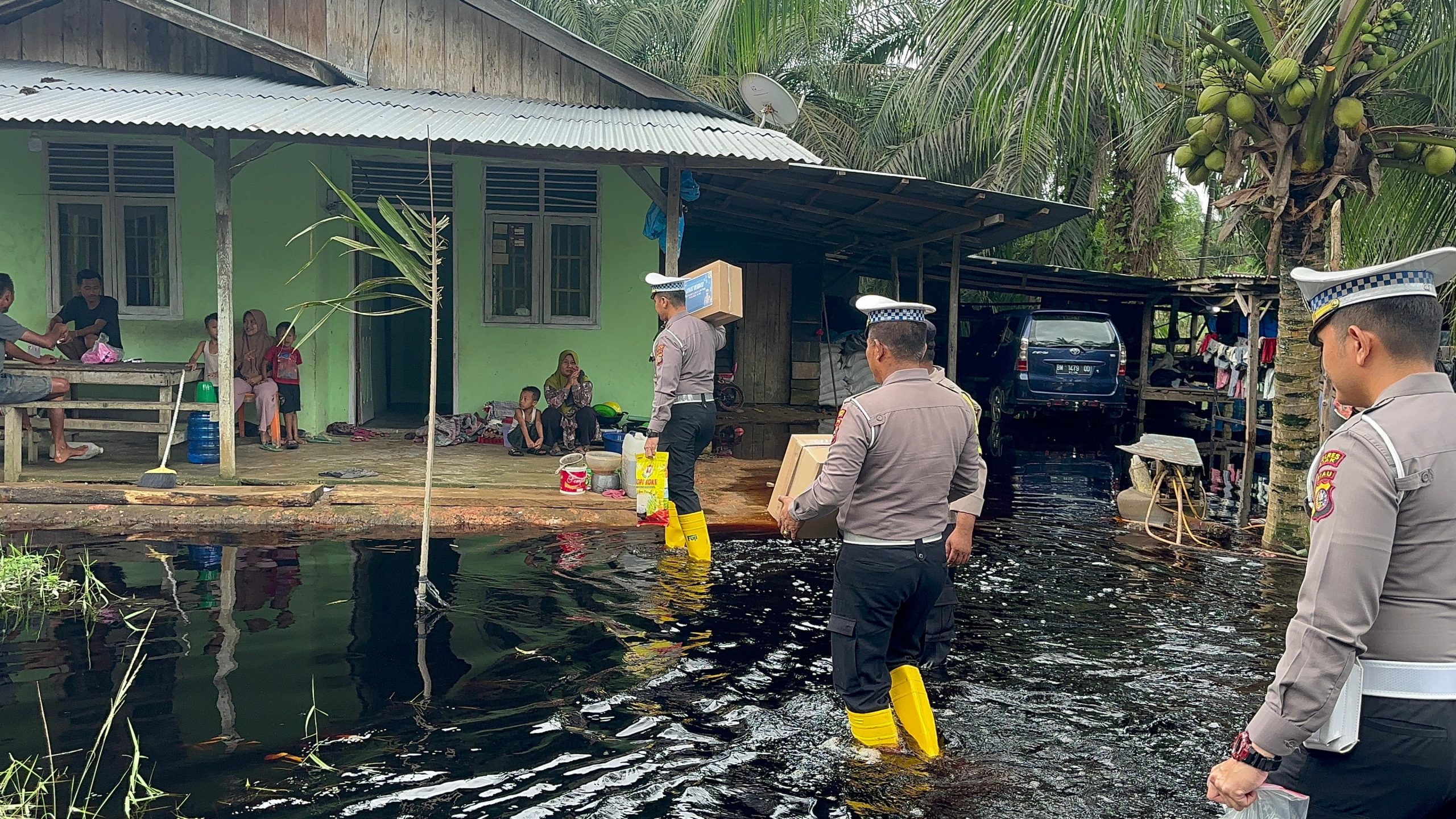Pantauan di lapangan Kasatlantas polres Siak AKP Kaliman Siregar membawa bantuan sembako untuk warga korban banjir di Kampung Benteng Hilir, Kecamatan Mempura. Bantuan itu menjadi bukti nyata solidaritas dan kepedulian pihak kepolisian terhadap masyarakat yang tengah menghadapi kesulitan akibat bencana alam.
