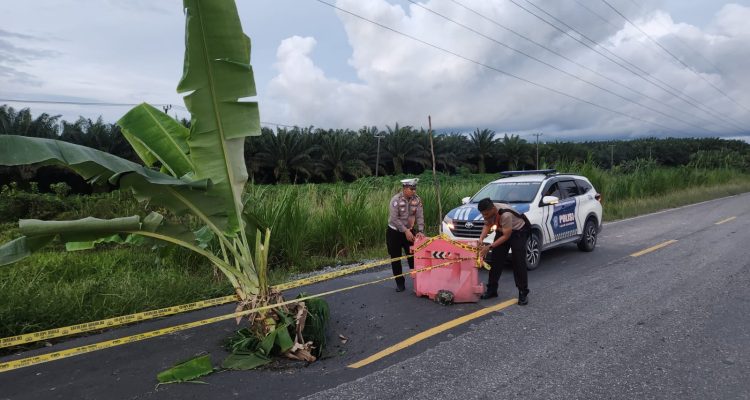 Cegah Terjadinya Lakalantas di Jalan Rusak, Satlantas Polres Siak Pasang Water Barrier di Lintas Dayun